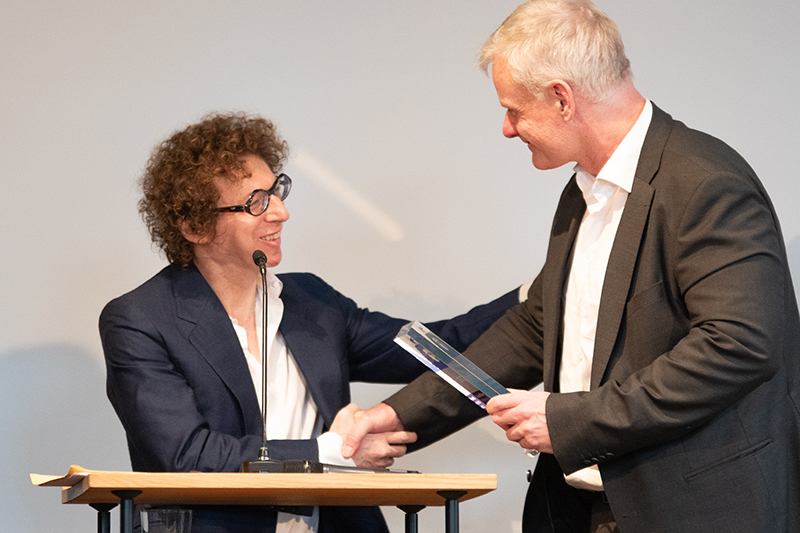 Der Jurypräsident Dr. Dirk Vaihinger überreicht den Preis an Arnon Grünberg