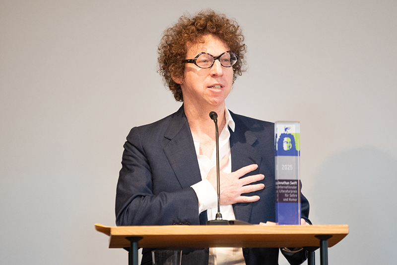 Im Literaturhaus Zürich wurde am 9. November 2025 2025 der nach Jonathan Swift benannte und mit CHF 20.000 dotierte Internationale Literaturpreis für Satire und Humor zum elften Mal verliehen, und zwar an Arnon Grünberg.